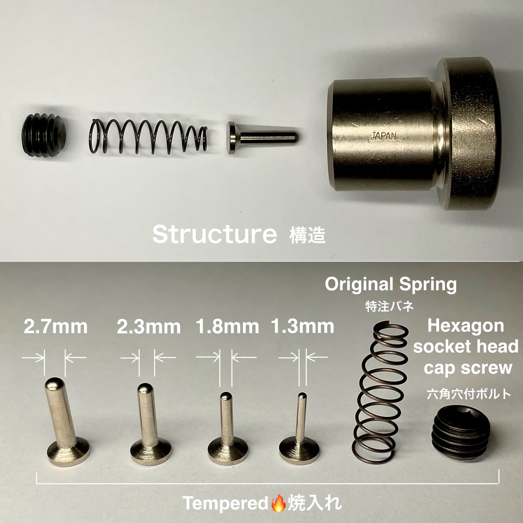 他社製品は18.8~18.9mmで大まかなのに対し、弊社は『18.94~18.95mm』に統一しました。