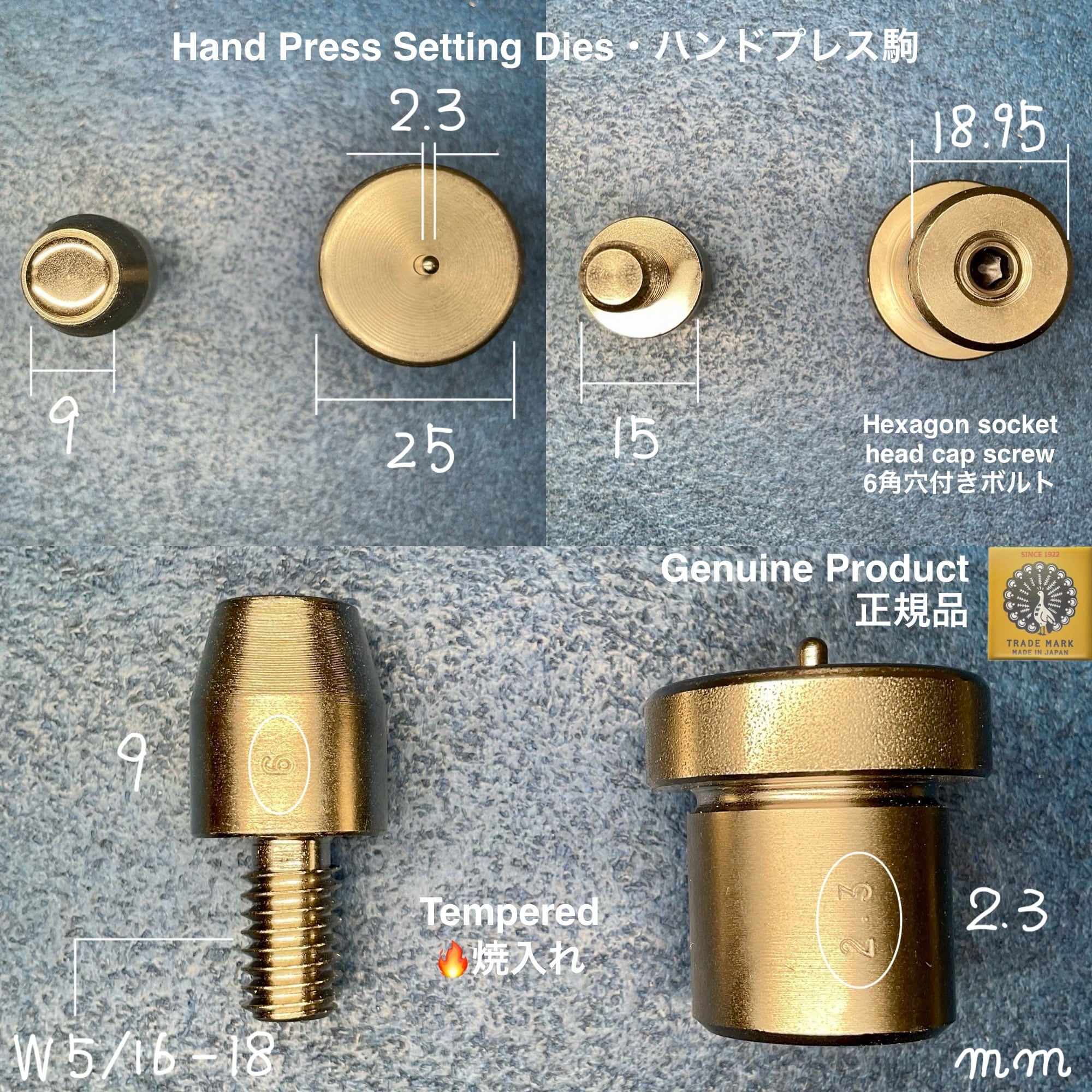 ハンドプレス打駒 (片面カシメ 大 9mm)【上下駒セット】Peacock