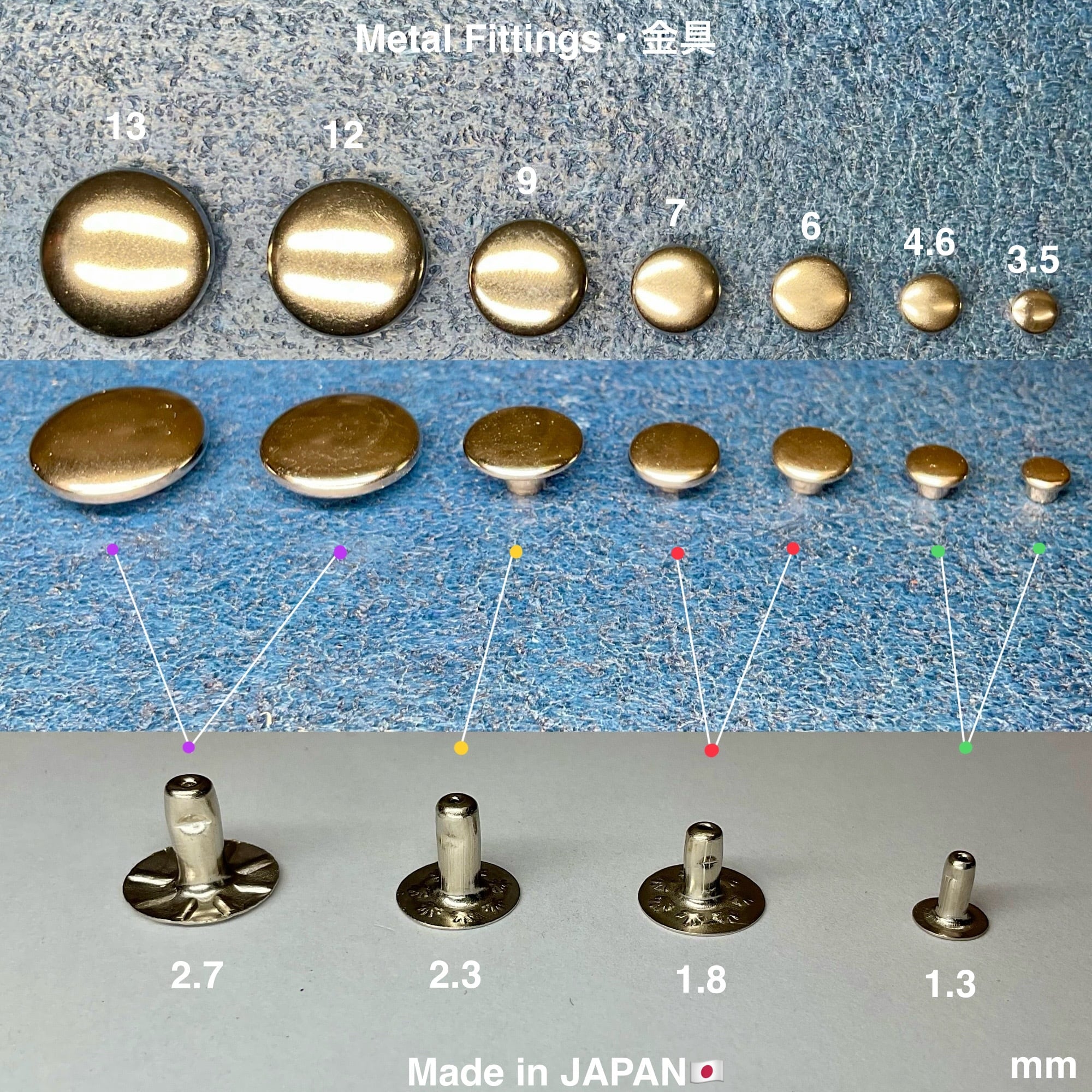 実はカシメ用下駒の規格は『4種類』しか無いんです。